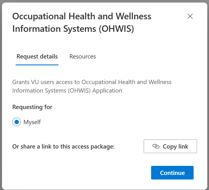 3. After signing in, choose "Continue" to request access.