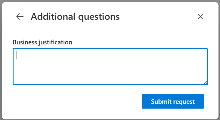 4. On the final pop-up, choose "Submit request". A "business justification" is not required.
