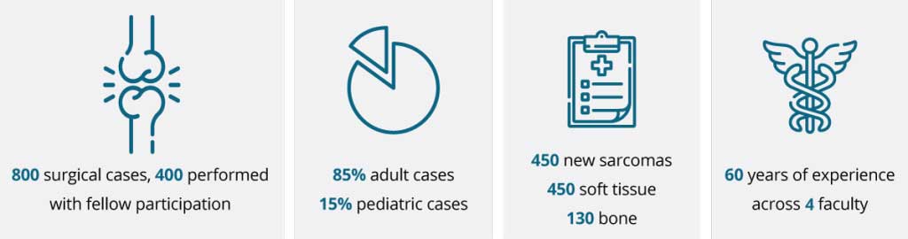 As our fellow, you can expect to work alongside regionally, nationally and internationally recognized faculty and surgeons every day. We’re one of the busiest orthopaedic oncology groups in the country, which means you’ll manage a high surgical volume and highly complex cases. You’ll also learn to make informed diagnoses through multi-disciplinary clinical analysis, will get access to innovative research opportunities and most importantly, will learn to become a compassionate leader.